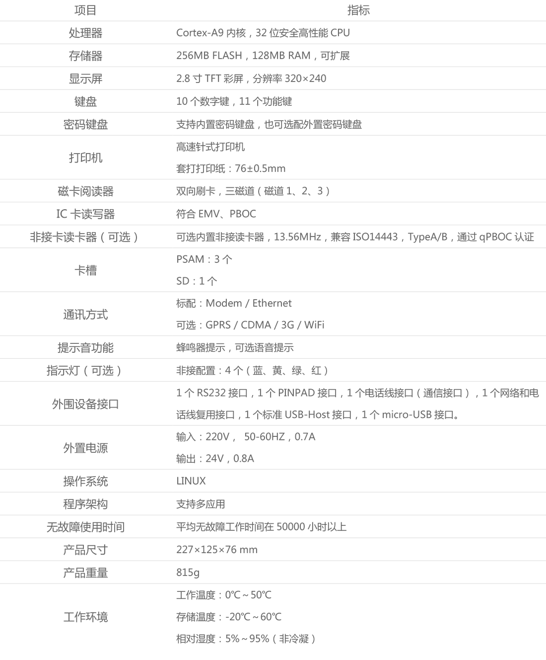 参数规格